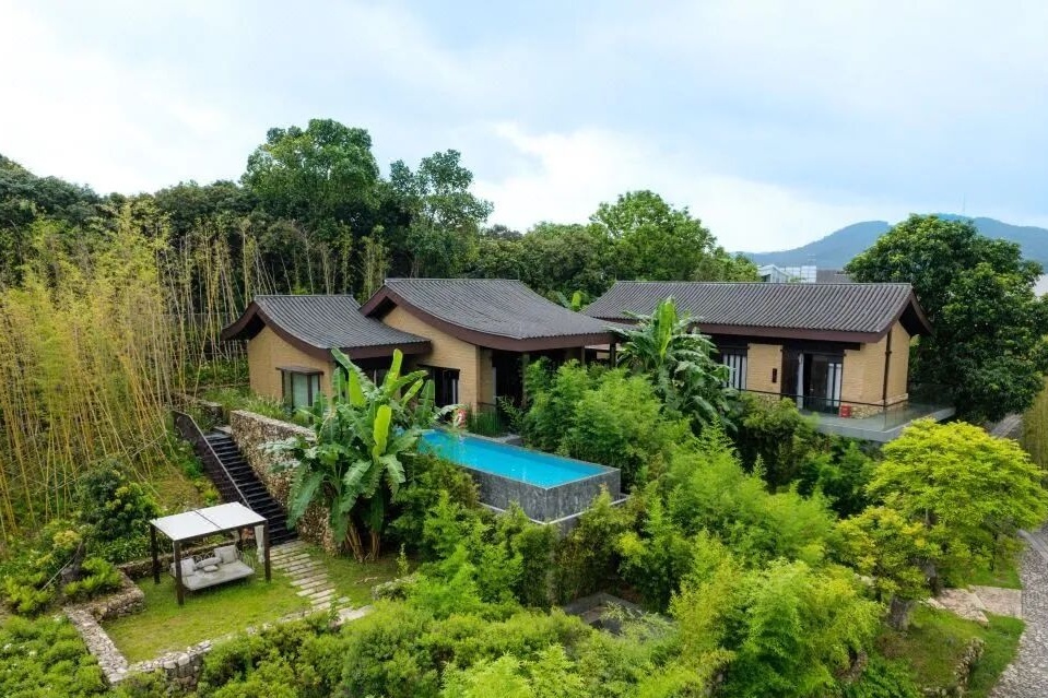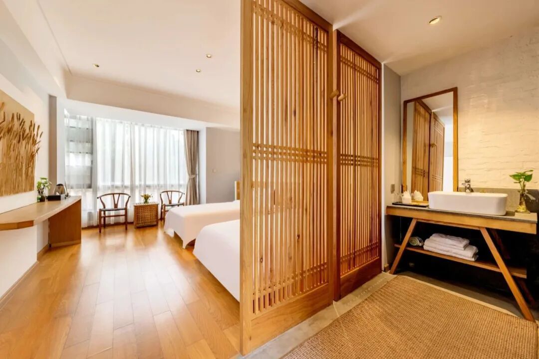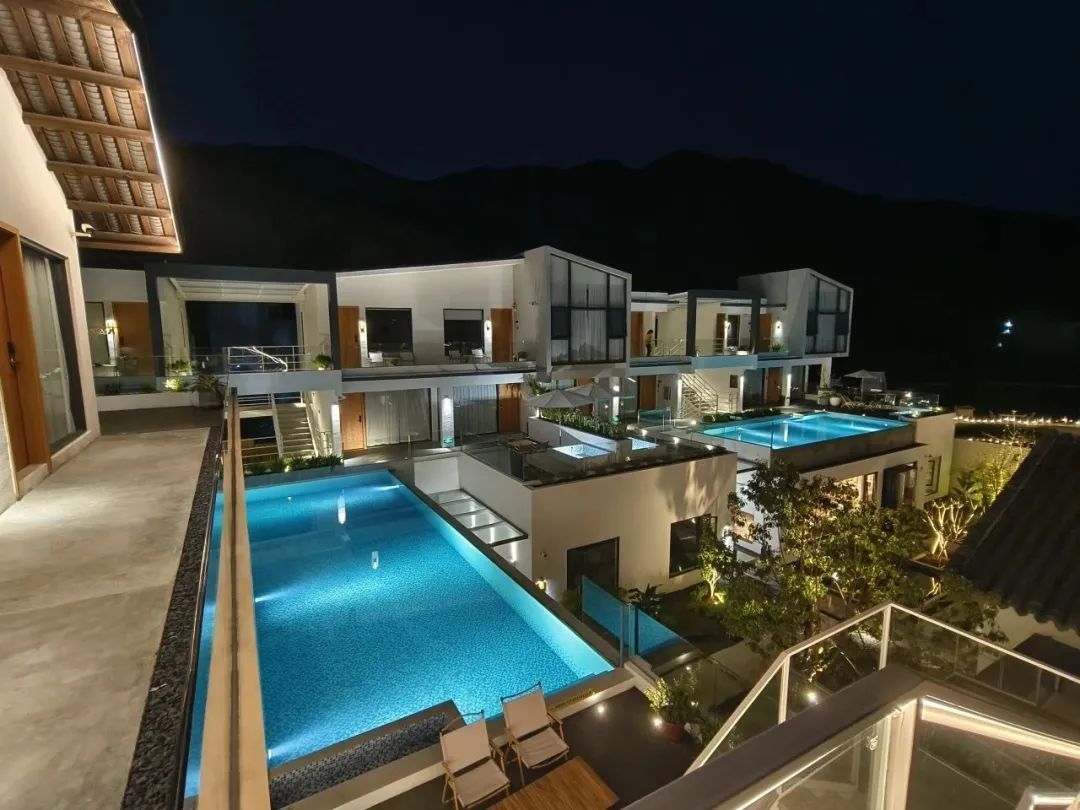 民宿共设13间独立观景阳台客房,推窗即见溪水蜿蜒,抬眼便望竹海婆娑;另有4栋乡宿别院,自带独立庭院与天台,客厅、开放式厨房方便亲友欢聚,棋艺空间暗藏雅致趣味,露天泡池可伴星空入眠。