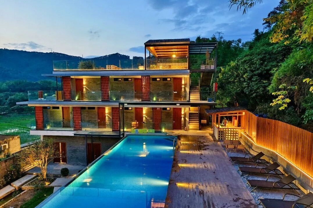 想要在度假中感受艺术氛围?广州1978艺术村落民宿是不二之选。它坐落于美丽的增江河畔,位于1978电影小镇园区山顶。这里“避世又不离城”,周边有1978电影小镇、正果老街等,逛吃玩一站式满足,既能让你远离城市的喧嚣,又能便捷接触生活的烟火气。