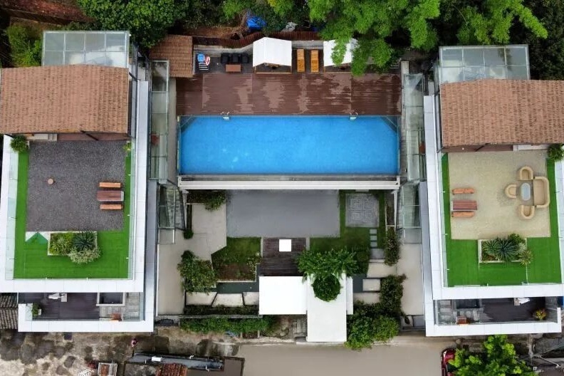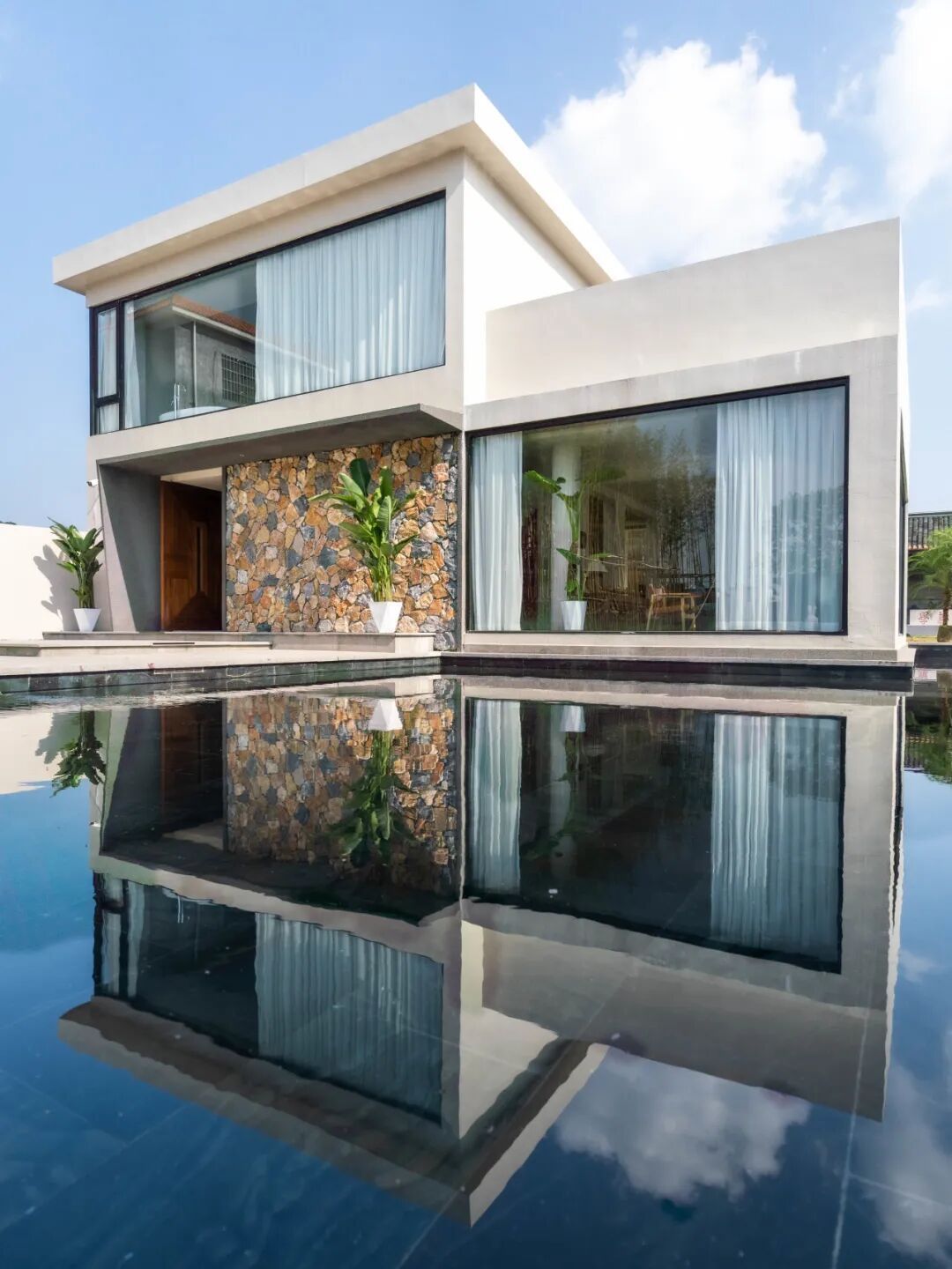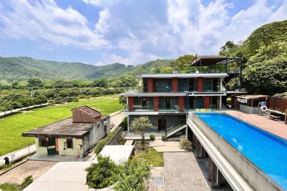 麦客好客精品民宿,位于增城区正果镇番丰村,由一栋三层高主楼和四栋乡宿小院组成,延续了麦客系列的木白灰风格,还巧妙融入更多水元素,让整体建筑显得灵动飘逸。