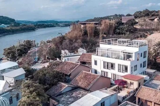 位于增城区1978电影小镇景区里的江居民宿,自带“安静又慵懒”的温柔性格,通体洁白的外观清新亮眼,干净整洁的环境满是舒适,登上民宿天台远眺,江水蜿蜒流淌,青山隐隐相伴。